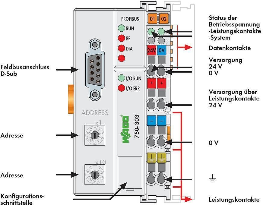 Wago Przyłącz magistrali 750-303 24 V/DC 750-303 Strumień