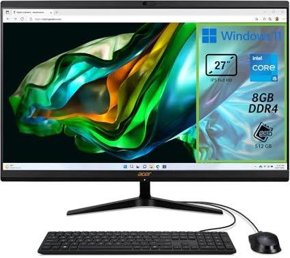 WYSOKA WYDAJNOŚĆ: Procesory Intel Core 12. generacji i karta graficzna Intel UHD ułatwiają bardziej złożone zadania lub edycję treści. Możesz otworzyć wszystkie aplikacje, które chcesz, dzięki 8 GB pamięci RAM DDR4 ✅ UZYSKAJ MAKSYMALNIE Z komputera: Procesory Intel Core i5-12450H optymalizują rzeczywistą wydajność pod względem produktywności i współpracy, dzięki większej wielozadaniowości, dzięki czemu możesz pracować lepiej ✅ NITIDES: Wyświetlacz 27" IPS FHD oferuje cienką ramkę, wyjątkowy stosunek ekranu do ciała, ekran odchylany (od -5° do 25°) i technologię Acer BlueLightShield dla większego komfortu wizualnego ✅ POŁĄCZENIE WIDEO I PRYWATNOŚĆ: Dzięki wbudowanej kamery internetowej 5MP i dwóm mikrofonom stereo, będziesz mieć wrażenie, że Twoi znajomi są z Tobą. A dzięki wygodnej migawce prywatności, gwarantujesz spokój i poufność swojemu życiu prywatnemu ✅ POŁĄCZ WSZYSTKIE SWOJE ERIFERYCZNE: wyposażony w szybką i stabilną łączność z Wi-Fi 6E, Bluetooth 5, USB 3.2 Gen1 i 2 oraz USB 3.2 Gen2 Type C, Aspire z serii C obsługuje szeroką gamę opcji łączności, aby podłączyć wszystkie urządzenia peryferyjne