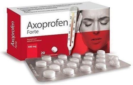 Wskazania do stosowania: Krótkotrwałe objawowe leczenie: - Bólu o nasileniu łagodnym do umiarkowanego - Gorączki. Dawkowanie Należy stosować najmniejszą skuteczną dawkę przez najkrótszy okres konieczny do złagodzenia objawów . Dorośli i młodzież o masie ciała ≥40 kg (w wieku 12 lat i powyżej): Dawka początkowa to 200 mg lub 400 mg ibuprofenu. Jeśli to konieczne, można przyjąć dodatkowo 200 mg lub 400 mg. Odstęp pomiędzy kolejnymi dawkami należy ustalić w zależności od obserwowanych objawów oraz z uwzględnieniem maksymalnej zalecanej dawki dobowej. Odstęp pomiędzy kolejnymi dawkami nie powinien być krótszy niż 6 godzin. Nie należy przekraczać całkowitej dawki 1 200 mg w ciągu 24 godzin. Produkt leczniczy Axoprofen Forte stosuje się tylko w leczeniu krótkotrwałym. Szczególne grupy pacjentów Pacjenci w podeszłym wieku U pacjentów w podeszłym wieku występuje zwiększone ryzyko poważnych następstw działań niepożądanych. Jeśli podanie NLPZ (niesteroidowego leku przeciwzapalnego) uważa się za konieczne, należy stosować najmniejszą skuteczną dawkę przez możliwie najkrótszy okres. W czasie stosowania NLPZ pacjent powinien być poddawany regularnej obserwacji w kierunku krwawienia z przewodu pokarmowego. W przypadku zaburzeń czynności nerek lub wątroby należy indywidualnie ustalać dawkowanie. Niewydolność nerek Należy zachować ostrożność, ustalając dawkowanie ibuprofenu u pacjentów z zaburzeniami czynności nerek. Dawkowanie należy ustalić indywidualnie. Należy stosować najmniejszą skuteczną dawkę i monitorować czynność nerek. Ibuprofen jest przeciwwskazany u pacjentów z ciężką niewydolnością nerek. Niewydolność wątroby Należy zachować ostrożność, ustalając dawkowanie u pacjentów z zaburzeniami czynności wątroby. Dawkowanie należy ustalić indywidualnie i stosować najmniejszą skuteczną dawkę. Stosowanie tego produktu leczniczego jest przeciwwskazane u pacjentów z ciężką niewydolnością wątroby. Dzieci i młodzież Inne postacie farmaceutyczne i moce mogą być bardziej odpowiednie do podawania. Produkt leczniczy Axoprofen Forte nie jest przeznaczony do podawania u młodzieży o masie ciała poniżej 40 kg i dzieci w wieku poniżej 12 lat. Sposób podawania Podanie doustne. Axoprofen Forte należy przyjmować, popijając szklanką wody. Aby uniknąć podrażnienia żołądka lub gardła, tabletek nie należy kruszyć, żuć ani ssać. Zaleca się, aby pacjenci z wrażliwym żołądkiem przyjmowali produkt leczniczy Axoprofen Forte w trakcie posiłków. Przeciwwskazania - Nadwrażliwość na substancję czynną lub którąkolwiek substancję pomocniczą wymienioną punkcie 6.1. - Pacjenci z reakcjami nadwrażliwości w wywiadzie (tj. skurcz oskrzeli, astma oskrzelowa, zapalenie błony śluzowej nosa, pokrzywka lub obrzęk naczynioruchowy) związane ze stosowaniem kwasu acetylosalicylowego lub innych niesteroidowych leków przeciwzapalnych (NLPZ). - Pacjenci z ciężką niewydolnością serca (klasa IV wg NYHA). - Pacjenci z ciężką niewydolnością wątroby lub ciężką niewydolnością nerek. - Pacjenci z niewyjaśnionymi zaburzeniami wytwarzania krwi. - Choroba wrzodowa żołądka i (lub) dwunastnicy (czynna lub nawracająca) w wywiadzie lub krwotoki z przewodu pokarmowego (zdefiniowane jako dwa lub więcej epizodów owrzodzenia lub krwawienia). - Krwawienie z przewodu pokarmowego i perforacja w wywiadzie związane z wcześniejszym leczeniem NLPZ. - Pacjenci z krwawieniem mózgowo-naczyniowym lub innym czynnym krwawieniem. - Pacjenci z ciężkim odwodnieniem (np. spowodowanym wymiotami, biegunką lub niewystarczającym przyjmowaniem płynów). - Ostatni trymestr ciąży. Interakcje z innymi produktami leczniczymi i inne rodzaje interakcji Należy zachować ostrożność, stosując ibuprofen jednocześnie z następującymi substancjami czynnymi: Inne niesteroidowe leki przeciwzapalne (NLPZ), włączając salicylany Jednoczesne stosowanie kilku NLPZ może prowadzić do zwiększonego ryzyka owrzodzeń przewodu pokarmowego lub krwawienia z przewodu pokarmowego z powodu działania synergicznego. Dlatego też, należy unikać jednoczesnego stosowania ibuprofenu z innymi NLPZ. Selektywne inhibitory cyklooksygenazy-2 Należy unikać jednoczesnego stosowania ibuprofenu z innymi NLPZ, w tym selektywnymi inhibitorami cyklooksygenazy-2, ponieważ może to potencjalnie powodować wystąpienie działania addycyjnego. Kwas acetylosalicylowy Jednoczesne stosowanie kwasu acetylosalicylowego i ibuprofenu nie jest zalecane ze względu na możliwość nasilenia działań niepożądanych. Dane doświadczalne wskazują, że ibuprofen może kompetycyjnie hamować działanie małych dawek kwasu acetylosalicylowego polegające na hamowaniu agregacji płytek krwi, gdy te produkty lecznicze są podawane jednocześnie. Pomimo braku pewności, czy dane te można ekstrapolować do sytuacji klinicznych, nie można wykluczyć, że regularne, długotrwałe stosowanie ibuprofenu może ograniczać działanie kardioprotekcyjne małych dawek kwasu acetylosalicylowego. Uważa się, że sporadyczne przyjmowanie ibuprofenu nie ma istotnego znaczenia klinicznego. Digoksyna, fenytoina, lit Jednoczesne stosowanie ibuprofenu z digoksyną, fenytoiną lub preparatami litu może prowadzić do zwiększenia stężenia tych substancji w surowicy. Monitorowanie stężeń litu, digoksyny i fenytoiny w surowicy nie jest generalnie wymagane, jeśli stosowanie produktu leczniczego odbywa się zgodnie z zaleceniami (maksymalnie przez 3 lub 4 dni). Leki moczopędne, inhibitory konwertazy agniotensyny (ACE), leki beta-adrenolityczne i antagoniści receptora angiotensyny II NLPZ mogą osłabiać wpływ leków moczopędnych oraz innych leków hipotensyjnych. Leki moczopędne mogą również zwiększać ryzyko nefrotoksyczności NLPZ. U części pacjentów z zaburzeniem czynności nerek (np. u pacjentów odwodnionych lub pacjentów w po