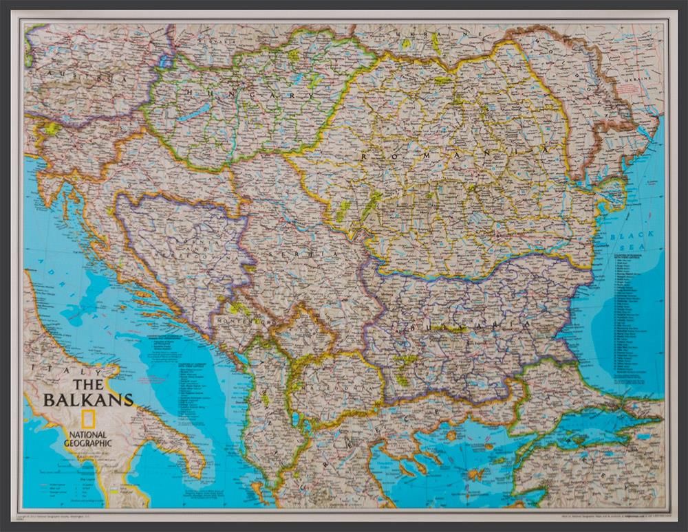 Mapy wydawnictwa National Geographic cechuje niezwykła dbałość o szczegóły połączona z odpowiednio dobraną kolorystyką, co dodaje mapie klasy na najwyższym poziomie. Mapa ścienna Bałkany Classic 1:1 948 000 zawiera m.in.:- tysiące nazw miejscowości,- granice polityczne,- Parki Narodowe- sieci infrastruktury: drogi, kanały, trasy promowe i kolejowe- cieniowanie: ukształtowanie terenu- wysokości szczytów i głębokości zbiorników wodnych wyrażone w metrachKraje przedstawione na mapie:- Albania,- Austria,- Bośnia i Hercegowina,- Bułgaria,- Chorwacja,- Węgry,- Kosowo,- Macedonia,- Mołdawia,- Czarnogóra,- Rumunia,- Słowenia,Fragmenty krajów ościennych: Grecji, Włoch, Słowacji, Serbii, Turcji i Ukrainy.Dodatkowo:Mapa oprawiona jest w elegancką ramkę aluminiową, naniesiona na podkład magnetyczny, dzięki czemu można oznaczać interesujące punkty przy użyciu magnesów. Seria Classic National Geographic, to bardzo dobrze rozpoznawalne, charakterystyczne odcienie błękitu przeplatane z piaskowym kolorem, a do tego wielobarwny kontur odznaczający na mapie poszczególne obszary. Piękna ozdoba, praktyczna informacja, pomoc dla ucznia i studenta, żywa kolorystyka świetnie nadająca się do biura i pokoju.