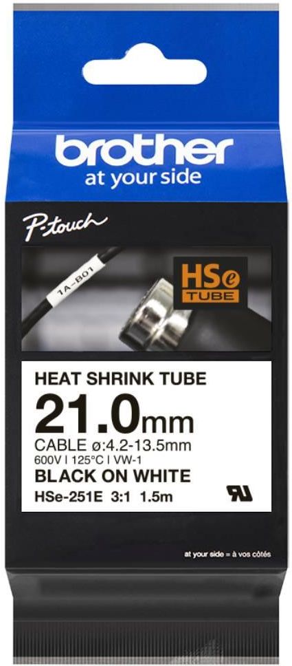 Brother HSe-251, czarny nadruk na białym tle o szerokości 23.6mm Oryginalna rurka termokurczliwa HSe-251 firmy Brother o szerokości 23.6mm została zaprojektowana w celu trwałego oznaczania kabli oraz przewodów. HSe-251 charakteryzuje się współczynnikiem kurczenia 2:1 i jest rekomendowana do kabli o średnicy od 7.3mm do 14.3mm. Rurka termokurczliwa z czarnym nadrukiem na białym tle jest kompatybilna z drukarkami P-touch, które posiadają logo HS i HSe na pokrywie kasety z taśmą.  Główne cechy 23.6mm serokości, 1.5m długości Po podgrzaniu ulega skurczeniu w celu łatwiejszej identyfikacji kabli Wysokiej jakości oryginalna rurka termokurczliwa Zapewnia wyraźne i trwałe rezultaty Oryginalna rurka termokurczliwa HSe-251 firmy Brother o szerokości 23.6mm została zaprojektowana w celu trwałego oznaczania kabli, światłowodów oraz przewodów o zewnętrznej średnicy między 7.3mm-14.3mm.   Gdy nadrukowana rurka umieszczona jest wokół kabla i ogrzewana za pomocą opalarki, kurczy się, mocno zaciskając kabel. Klej nie jest potrzebny, dzięki czemu nawet w ciepłym otoczeniu rurka nie oderwie się od kabla.   Rurka termokurczliwa HSe-251 jest kompatybilna z drukarkami P-touch. Nośnik stanowi nieodłączny element zestawu elektryka i pomaga spełnić wymogi bezpieczeństwa oraz wydajniej wykonywać swoją pracę.