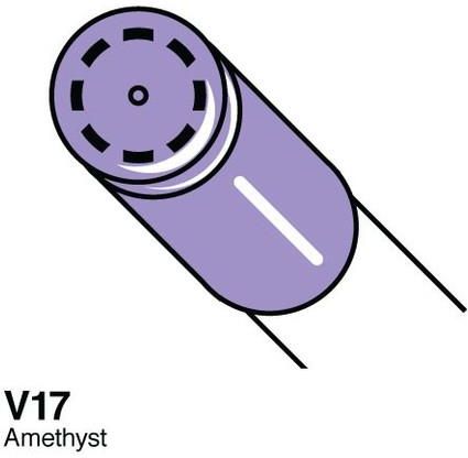 Copic Ciao Marker to wieczny marker napełniany tuszami Various Ink dwustronny: chisel/brush (wymienne końcówki: duży pędzel i pół szeroką ściętą ) tusz na bazie alkoholu, szybkoschnący kolor tuszu: V17 Amethyst idealne do projektowania graficznego, sztuki manga, scrapbooking i stemplowania przeznaczony dla wszystkich, począwszy od dzieci chcących rysować i malować, a skończywszy na profesjonalnych projektantach i grafikach marker będzie z pewnością znakomicie służył wszystkim tym, którzy zaczynają przygodę z rysunkiem, ilustracją, komiksem czy Mangą; idealne narzędzie dla studentów kierunków artystycznych i projektowych odpowiednie oznaczenie kolorowymi skuwkami zapewnia szybką i dokładną identyfikację koloru produkowane 180 kolorów dzięki możliwości wielokrotnego napełniania staje się narzędziem wiecznej kreacji; przy pomocy jednej butelki tuszu Various Ink można go do 16 razy całkowicie napełnić tuszemnapełnianie odbywa się przez otwór po wyjęciu szerokiej ściętej końcówki i wlaniu metodą kropelkową tuszu, do momentu uzyskania ponownej sprawności pisaka; do wyjmowania końcówek służy penseta; rozbarwienia tj przejścia tonalne można dokonywać poprzez neutralny COPIC Ciao Blender produkt japońskiej firmy Too/Copic