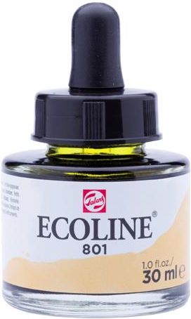 Talens Ecoline skoncentrowana farba akwarelowa w stanie płynnym pojemność: 30 ml kolor: 801 złoty/ gold odznacza się wspaniałą przyswajalnością do papieru akwarelowego, rysunkowego lub tektury Ecoline to wszechstronność w użyciu w połączeniu z różnego rodzaju materiałami; doskonale nadaje się do prac projektowych, do lawowania prace powinny być przechowywane z dala od światła aby zapobiec utracie kolorów doskonale sprawdza się w malarstwie akwarelowym, ale także w rysunku architektonicznym, i wszelkich technikach hobby znakomicie nadaje się do znakowania i pieczętowania produkowane 46 transparentnych kolorów oraz 2 kryjące (złoty i biały) opakowanie: kwadratowa zakręcana butelka produkt holenderskiej firmy Talens