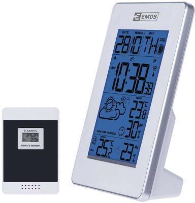 Emos Stacja pogodowa E3003 Bezprzewodowa stacja meteorologiczna EMOS METEO E3003 Dzięki tej stacji meteorologicznej zawsze będziecie na pewno wiedzieć, na jaką pogodę trzeba się przygotować, żeby nic nas nie zaskoczyło. Stacja umożliwia precyzyjną ocenę aktualnych oraz prognozowanych warunków atmosferycznych panujących na zewnątrz budynku oraz określa temperaturę w pomieszczeniu, w którym jest ustawiony. Urządzenie posiada czytelny, duży wyświetlacz (103 × 72 mm). Temperatura na zewnątrz jest mierzona za pomocą czujnika zewnętrznego (znajduje się w zestawie), natomiast klimat w pomieszczeniu jest oceniany za pomocą czujników wbudowanych w stację pogodową. Dodatkowo urządzenie wyświetla aktualny czas i datę. W zestawie znajduje się czujnik zewnętrzny, który mierzy temperaturę i wilgotność panującą na zewnątrz. Informacja o temperaturze i wilgotności wyświetlana jest zarówno na wyświetlaczu stacji, jak i na wyświetlaczu czujnika zewnętrznego. Istnieje możliwość podłączenia do trzech czujników zewnętrznych. Dane techniczne: Producent: EMOS Model: E3003 Aktualne dane - temperatura, czas, wilgotność, zachmurzenie Wskaźnik temperatury i wilgotności - 2x (Stacja i Sensor) Wyświetla dane o maksymalnej / minimalnej zmierzonej temperaturze Ostrzeżenie temperaturowe - alarm dla konkretnej temperatury Wskazuje trend wartości mierzonych temperatury Prognoza pogody Fazy Księżyca Podświetlenie LED wyświetlacza Kalendarz Temperatura wewnętrzna: -10 °C do +50 °C, rozdzielczość 0,1 °C Wilgotność wewnętrzna: 20 % do 95 % RH, rozdzielczość 1 % Temperatura zewnętrzna: -50 °C do +70 °C, rozdzielczość 0,1 °C Wilgotność zewnętrzna: 20 % do 95 % RH, rozdzielczość 1 % Jednostki temperatury: °C/°F Czujnik bezprzewodowy: częstotliwość transmisji 433 MHz, maks. 0,1mW e.r.p. Maksymalna możliwa liczba czujników do podłączenia: maks. 3 (w zestawie 1) Zasięg pracy do 30m Zegar DCF - sterowany sygnałem radiowym Budzik z funkcją drzemki Zasilanie stacji głównej: baterie 2× 1,5V AA (nie ma w komp