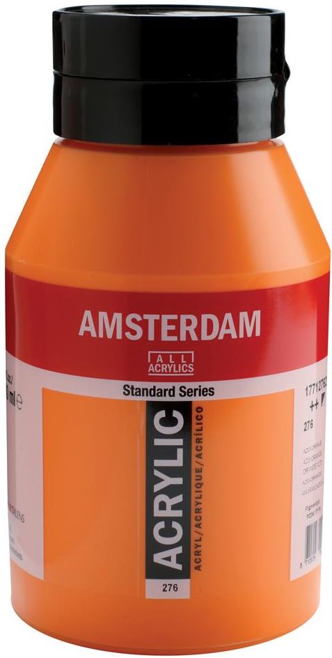 Talens Amsterdam All Acrylics Standard Acrylic Paints farba akrylowawysoka odporność na światło; farby zawdzięczają zastosowaniu czystych, nie blaknących pigmentówwyjątkowa trwałość(środek wiążący składa się w 100% z żywicy akrylowej)odporne na substancje alkaliczne, dzięki czemu nadają się do malarstwa ściennegołatwo można rozcieńczyć wodącechuje je krótki czas schnięcia i cienkie warstwy wysychają nawet w pół godzinydzięki specjalnej metodzie wytwarzania farby są praktycznie bezwonnepojemność: 1000 mlkolor: 276 azo orangeprodukt holenderskiej firmy Talens