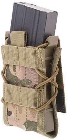 Modularna ładownica karabinowa TC+ - MC Modularna ładownica, która dzięki swojej prostej, lecz oryginalnej konstrukcji nadaje się do przenoszenia magazynków - standardu M4/M16,. Mieści jeden magazynek, uszyta została z wytrzymałego, nylonowego materiału, w środku zaś zastosowano specjalne zabezpieczenie wykonane z tworzywa uniemożliwiające przypadkowe wypadnięcie magazynka. Mocowana do oporządzenia dzięki systemowi MOLLE. Ładownica pozbawiona jest klasycznej klapy, co umożliwia szybkie dobycie magazynka. Sam magazynek jest chroniony przed wypadnięciem za pomocą gum oraz specjalnego zabezpieczenia z wytrzymałego tworzywa, więc nie musimy się martwić o jego przypadkowe zgubienie. Palsy systemu MOLLE znajdują się również na przedniej ściance, co umożliwia np. połączenie dwóch ładownic ze sobą.