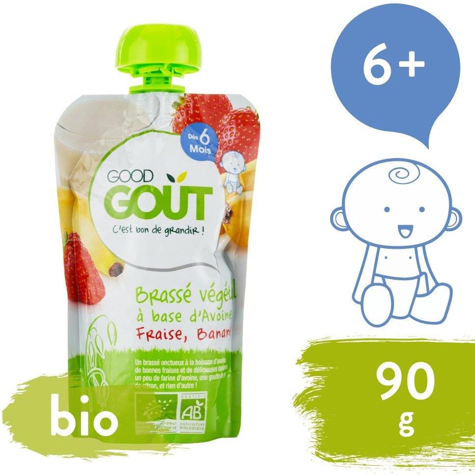 Good Gout BIO Deser owsiany z truskawkami i bananem (90 g) to produkt odpowiedni dla niemowląt, które ukończyły 6 miesiąc życia. Przekąska owocowa z napojem migdałowym do specjalnego żywienia niemowląt i małych dzieci. Pasteryzowane. Obrabiane cieplnie. Bezglutenowe.