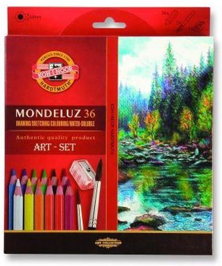 Profesjonalne kredki akwarelowe oprawione w wysokiej jakości drewno cedrowe.Można je używać podobnie jak ze zwykłe kredki lub też wykorzystać ich walory akwareli, czyli za pomocą wilgotnego pędzelka rozmywać w dowolnym miejscu rysunek. Naniesioną kredkę można całkowicie rozprowadzić pędzlem po rysunku, lub tylko częściowo pozostawiając linie, kontury, kreski. Dzięki wieloletniemu doświadczeniu i starannemu wykonaniu KOH-I-NOOR kredki Mondeluz są odporne na zawilgocenie i zachowują swoje walory. Do nabycia w zestawach kolorów w pudełkach tekturowych i metalowych, na sztuki, oraz zestawach z temperówką i pędzelkami.