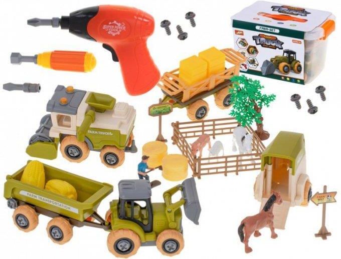 Gospodarstwo rolne farma kombajn siewnik do skręcenia GOSPODARSTWO ROLNE FARMA KOMBAJN SIEWNIK DO SKRĘCENIA Czy Twoje dziecko uwielbia spędzać czas na wsi? A może jest zainteresowane pracą rolników? W takim razie ta zabawka nada się idealnie. Skrzynka pełna akcesoriów, które są potrzebne każdemu rolnikowi. Kilka rodzajów pojazdów, zwierzęta, plony, zagrody - wszystko się znajdzie! Ale to nie koniec! W zestawie zawarty jest również zabawkowy śrubokręt i wiertarka na baterie. Koło traktora uszkodziło się podczas pracy na polu? Trzeba je wymienić? Nie ma sprawy! Za pomocą śrubokręta wymiana będzie bezproblemowa. Zabawa wkrętarką i śrubokrętem daje świetną rozrywkę - wszystkie pojazdy można rozkręcić i skręcić ponownie. Ale poza aspektem rozrywki, zestaw doskonale wpłynie na prawidłowy rozwój motoryczny dziecka i rozwinięcie koordynacji wzrokowo-ruchowej. Dodatkowo dziecko będzie mogło zaaranżować farmę według własnego pomysłu. Zestaw rozwinie wyobraźnię i pobudzi do kreatywnego myślenia. Różnorodność akcesoriów umożliwi dziecku zabawę w towarzystwie - z kolegami, rodzeństwem, czy rodzicami. Każdy jest mile widziany na farmie! Wszystkie elementy zestawu zapakowane są w plastikowym pojemniku, który ułatwi przechowywanie wszystkiego w jednym miejscu. Dodatkowo pojemnik został wyposażony w praktyczną rączkę, która znacznie ułatwi przenoszenie zabawki w dowolne miejsce. Zestaw idealnie sprawdzi się jako prezent dla wszystkich fanów traktorów i zwierząt gospodarczych. Tworzywo: plastik Wiek dziecka: 3+ Zawartość zestawu: 1x traktor 3x przyczepy 1x kombajn 2x konie 1x świnka 1x jagnię 2x znaki 1x rolnik 1x śrubokręt z wymiennymi nakładkami (3 nakładki) 1x drzewko 1x wkrętarka 2x kostki siana 2x bele siana 2x kukurydze 6x płotków Wymiary: traktor: 14cm x 8cm x 9cm płaska przyczepa: 15cm x 8cm x 4,5cm przyczepa do przewozu koni: 13,5cm x7,5cm x 9,5cm kombajn: 15cm x 7cm x 9cm koń: 8cm x 3cm x 7cm średnica śrubki: 1,5cm długość śrubokrętu: 9cm wkrętarka: 13cm x 4cm x 14,5cm opakowania: 29cm x 21cm x 17cm Zapakowane w praktyczne plastikowe pudełko ułatwiające przechowywanie.