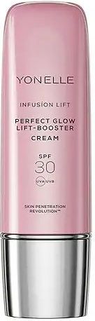 Yonelle INFUSÍON LIFT Krem Liftingujący Z Efektem Perfect Glow SPF 30 50ml INNOWACJA YONELLE! RETINOLOWA AKTYWACJA SYNTEZY KOLAGENU Odmładzający skórę, nowatorski peptyd retinol-mimetyczny o aktywności czynników wzrostu wzmacniają synergicznie: wysoce ochronna karnozyna, chroniąca włókna kolagenowe oraz przełomowa technologia NANODYSKÓW™ z antyoksydacyjnym resweratrolem. Innowacyjna formuła kremu z peptydem retinol-mimetycznym jest bezpieczna i skuteczna nawet w słoneczne dni. PERFECT LIFT Krem precyzyjnie wpływa na poprawę jędrności, elastyczności i gładkości skóry, zapewniając skuteczną terapię liftingującą i przeciwzmarszczkową. Skóra ma wyraźnie wyrównaną strukturę, a zmarszczki ulegają spłyceniu. PERFECT GLOW Mikrokapsułkowane pigmenty z perłowo-złotym połyskiem nadają skórze wyrafinowany efekt świetlistego „glow”. Optycznie wygładzają powierzchnię skóry, wyrównują jej koloryt dzięki subtelnemu efektowi color change i kamuflują drobne niedoskonałości. Silnie nawilżająca formuła natychmiast poprawia komfort skóry, przywracając jej elastyczność, miękkość i optymalne nawodnienie. SKUTECZNOŚĆ POTWIERDZONA BADANIAMI BADANIA APARATUROWE* współczynnik liftingu skóry LIFT triFACTOR™ wzrasta nawet o + 47% następuje poprawa gładkości skóry nawet o + 28% BADANIA APLIKACYJNE* 100% kobiet potwierdziło poprawę jędrności skóry 100% kobiet potwierdziło wygładzenie drobnych linii i zmarszczek oraz zmniejszenie ich widoczności 100% kobiet potwierdziło natychmiastową poprawę kolorytu i rozświetlenie skóry 95% kobiet potwierdziło poprawę gładkości skóry SKŁADNIKI AKTYWNE: Peptyd retinol-mimetyczny: biomimetyczny peptyd o działaniu zbliżonym do retinolu, który pobudza odnowę skóry i syntezę kolagenu. Wygładza zmarszczki, zwiększa jędrność i zapewnia dzienny efekt liftingu – bez ryzyka podrażnień, bezpieczny również do stosowania na dzień. NANODYSKI™ z resweratrolem: silny antyoksydant, który neutralizuje wolne rodniki, chroni skórę przed stresem oksydacyjnym i fotostarzeniem. Rozjaśnia, wyrównuje koloryt oraz przywraca skórze zdrowy, promienny wygląd. Karnozyna: silny antyoksydant chroniący własne włókna kolagenowe przed glikacją i stresem oksydacyjnym. Spowalnia wiotczenie, wzmacnia jędrność, działa przeciwzmarszczkowo. Tripeptyd-38: biomimetyczny peptyd stymulujący syntezę kolagenu i kwasu hialuronowego. Wypełnia zmarszczki, poprawia gęstość i sprężystość skóry oraz nadaje jej bardziej napięty i uniesiony wygląd. Ponadto: kwas hialuronowy, trehaloza.