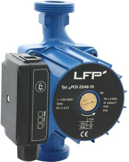Pompa obiegowa model ePCO 25-40-70/180 marki LFP. Jeden model pompy ePCO 25/40-70 zastępuje jednocześnie w parametrach Q (wydajność) i H (wysokość podnoszenia) dwa typy pomp 25/40 i 25/60. Jak to możliwe? Jedna pompa, dwie charakterystyki. Dzieje się tak za pośrednictwem jedno-sekwencyjnego przycisku umieszczonego na panelu sterującym silnika pompy. Pozwala on na wybranie odpowiedniej charakterystyki stałej lub proporcjonalnej z wysokością podnoszenia 4, 5 lub 6m. Wydajność: do 3,3m3/h, wysokość podnoszenia max.: do 4,5 lub 6 metrów, temperatura czynnika: od 5 do 110'C Średnica przyłączy: 1 CAL (na klasyczny śrubunek do pomp), napięcie zasilające: 1~230/240V, pobór mocy pompy: 6-44 W Regulacja prędkości: ręczna lub samoregulująca się prędkość obrotowa (6-44W)
