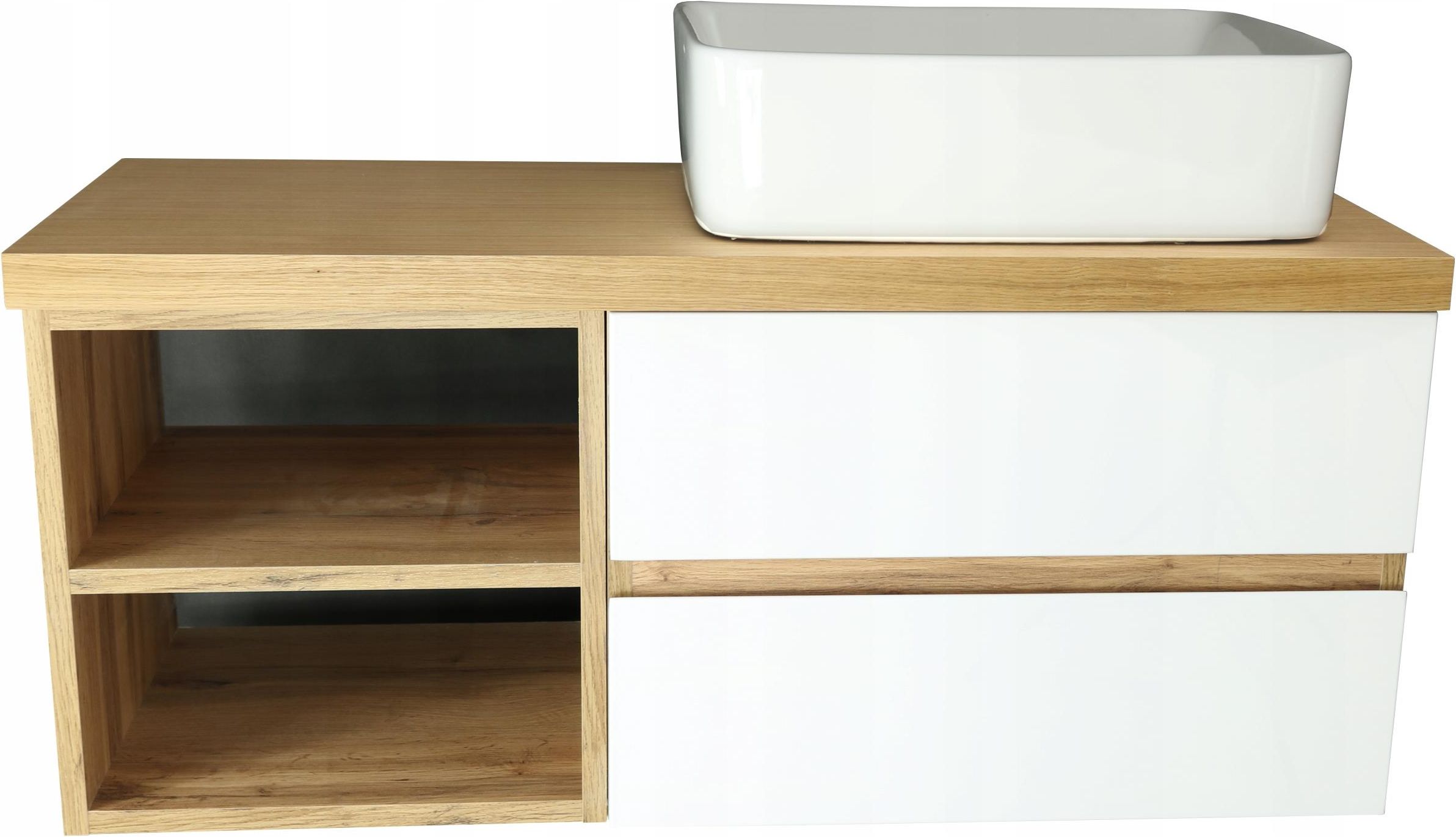 Meblico Zestaw Pod Umywalkę 80Cm Lakier Blat Dąb Fronty Biały Stryków