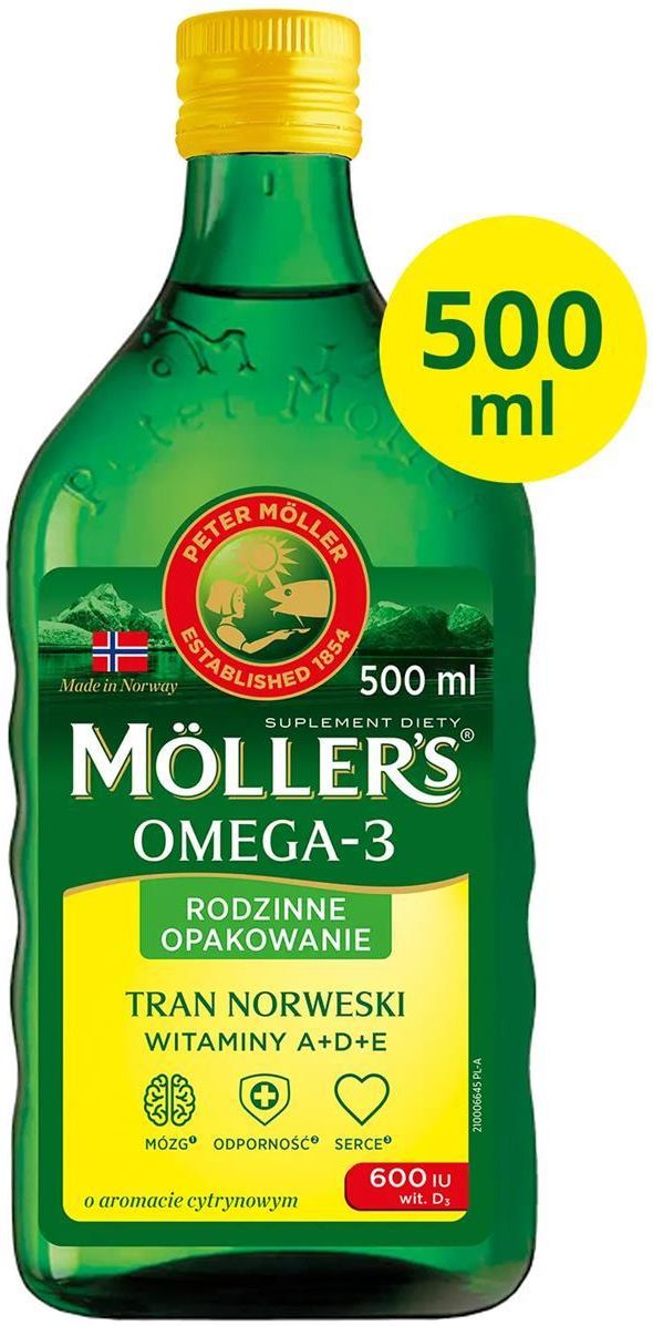 Opinie Mollers Tran Norweski Witaminy A+D+E Omega-3 cytrynowy, 500 ml Stryków