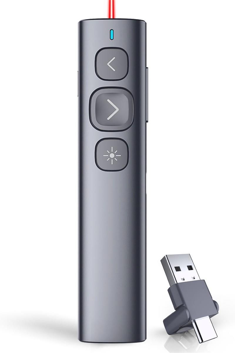 Pilot do prezentacji multimedialnych Norwii N95 Plus BLE to minimalistyczne urządzenie łączące funkcje bezprzewodowego kontrolera i wskaźnika laserowego. Zasięg komunikacji wynosi aż 100 metrów. Wybór między fizycznym odbiornikiem (USB-A i USB-C) a bezpośrednim połączeniem Bluetooth zapewnia elastyczność w każdej sytuacji. Pilot obsługuje dwa kolory lasera (czerwony i zielony), oferuje 4 tryby zmiany slajdów oraz funkcję obsługi hiperłączy (linków) bez konieczności sięgania po myszkę. Ergonomiczny duży przycisk „do przodu” ułatwia intuicyjną obsługę podczas prezentacji. Akumulator 300 mAh zapewnia do 180 dni gotowości do pracy. Ładowanie przez USB-C trwa zaledwie 1-2 godziny. Pilot jest kompatybilny z systemami Windows, macOS, Android oraz Linux. Główne cechy produktu bezprzewodowy pilot do prezentacji z wbudowanym wskaźnikiem laserowym 100 metrów zasięgu komunikacji dwa sposoby łączności: fizyczny odbiornik (USB-A i USB-C) lub Bluetooth wskaźnik laserowy z dwoma kolorami: czerwonym i zielonym zasięg lasera ponad 200 metrów 4 tryby zmiany slajdów dostosowane do różnych programów obsługa hiperłączy na slajdach bez konieczności sięgania po myszkę przycisk „Tab” do przełączania między linkami i oknami przycisk „Enter” do otwierania hiperłączy i zamykania okien kompatybilność z systemami: Windows 7+, macOS 10.15+, Android, Linux obsługa PowerPoint, Keynote, Prezi, Word, Excel, Acrobat Reader DC, ACD See i innych możliwość personalizacji przycisków przez aplikację Norwii Presenter (Windows/macOS) "plug and play" – brak konieczności instalowania dodatkowych sterowników pamięć do 7 ostatnio używanych urządzeń Bluetooth fizyczny przełącznik „ON/OFF” minimalizujący przypadkowe wyłączanie duży przycisk „do przodu” – łatwy do rozpoznania bez patrzenia na urządzenie akumulator 300 mAh zapewniający do 180 dni gotowości do pracy ładowanie przez port USB-C w 1-2 godziny dioda LED sygnalizująca niski poziom naładowania ultralekka konstrukcja (31 g) nowoczesny smukły design (132,5 x 29 x 12,5 mm) w zestawie kabel do ładowania certyfikaty: CE, RoHS, FDA, FCC 100 metrów zasięgu zdalnego sterowania Zasięg komunikacji pilota Norwii N95 Plus BLE to aż 100 metrów. Możesz swobodnie poruszać się z nim po dużej sali wykładowej, audytorium, kościele czy centrum konferencyjnym, nie tracąc kontroli nad prezentacją. Niezależnie od tego, czy prowadzisz spotkanie w małej sali szkoleniowej, czy wykład w przestronnej auli uniwersyteckiej, pilot zapewni Ci pełną swobodę ruchu. Dzięki takiemu zasięgowi możesz angażować publiczność, przemieszczać się między rzędami krzesełek, podchodzić do słuchaczy i jednocześnie wygodnie zmieniać slajdy bez konieczności wracania do komputera. Dwa kolory lasera – czerwony i zielony Pilot Norwii N95 Plus BLE wyposażono we wskaźnik laserowy z możliwością przełączania między dwoma kolorami: czerwonym (długość fali 640-660 nm) i zielonym (495-545 nm). Zasięg wiązki laserowej przekracza 200 metrów, co pozwala na precyzyjne wskazywanie istotnych elementów z dużej odległości. Czerwony laser sprawdzi się w większości standardowych zastosowań. Z kolei zielony będzie lepiej widoczny w jasno oświetlonych pomieszczeniach oraz na jasnych powierzchniach. Możliwość wyboru koloru lasera daje Ci elastyczność w dostosowaniu narzędzia do warunków panujących w sali. Laser jest bezpieczny w użytkowaniu podczas prezentacji. Bluetooth i USB – wybierz sposób łączności Norwii N95 Plus BLE oferuje dwa sposoby połączenia z komputerem lub urządzeniem mobilnym. Pierwszy to odbiornik z wtyczkami USB-A i USB-C, który przechowujesz w magnetycznej skrytce na obudowie pilota. Po podłączeniu do odpowiedniego portu urządzenie działa od razu, bez konieczności instalowania dodatkowych sterowników. Drugi sposób to bezprzewodowe połączenie Bluetooth, które nie zajmuje portu USB i pozwala na wygodne sparowanie z komputerami, tabletami czy smartfonami. Pilot może zapamiętać do 7 ostatnio używanych urządzeń. To wygodne rozwiązanie dla osób często zmieniających miejsca pracy. 4 tryby zmiany slajdów – dopasuj pilot do programu Nie każdy program do prezentacji działa tak samo. Norwii N95 Plus BLE oferuje aż cztery różne tryby pracy przycisków „góra” i „dół”, które możesz przełączać jednoczesnym długim naciśnięciem obu klawiszy: Tryb domyślny (lewo/prawo) – strzałki w lewo i w prawo, idealnie sprawdzają się w PowerPoint, WPS, Prezi i Keynote. Tryb Page Up/Down – przyciski odpowiadają klawiszom „Page Up” i „Page Down”, które działają w przeglądarkach zdjęć i galeriach. Tryb „scroll” (kółko myszy) – funkcja „scroll up/down”, przydatna w przeglądarkach internetowych i aplikacjach do krótkich filmów. Tryb góra/dół – strzałki góra/dół, które sprawdzają się w programach Word, Excel i innych edytorach tekstowych. Po przełączeniu tryb zostaje automatycznie zapisany w pamięci urządzenia i pozostaje aktywny do momentu kolejnej zmiany. Dzięki temu nie musisz konfigurować pilota za każdym razem, gdy zmieniasz program lub urządzenie. Obsługa hiperłączy bez myszki Norwii N95 Plus BLE wyposażono w przyciski „Tab” i „Enter”, które ułatwiają pracę z prezentacjami zawierającymi linki do stron internetowych. Przycisk „Tab” pozwala przełączać się między aktywnymi hiperłączami na slajdzie. „Enter” otwiera wybrany link. Wszystko bez konieczności sięgania po myszkę. Długie naciśnięcie przycisku „Tab” uruchamia funkcję przełączania między otwartymi oknami (skrót „Alt+Tab”), a długie naciśnięcie „Enter” zamyka aktywne okno (skrót „Alt+F4”). To wygodne rozwiązanie sprawdzi się podczas prezentacji interaktywnych, gdzie chcesz szybko przechodzić między różnymi materiałami lub zamykać niepotrzebne ap