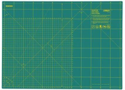 Olfa Mata podkładowa do cięcia 2mm A2 Powierzchnia mat serii FCM wykonana jest z elastycznych olefin / to materiał polimerowy o długim łańcuchu wytwarzany w reakcji łańcuchowej monomerów olefinowych, takich jak polietylen z etylenu lub polipropylen z propylenu/, pomiędzy którymi znajduje się warstwa z twardych olefin. Rozłożona mata ma rozmiar 620x450mm, a po złożeniu 450x320mm. Nadrukowana na macie podziałka ma wymiar 600x430mm. Falista linia łączenia obydwu części maty i ich ciasne spasowanie minimalizuje możliwość wjechania ostrza w szczelinę połączenia w trakcie cięcia. Ze względów konstrukcyjnych maty składane / podobnie jak maty obrotowe / można użytkować tylko z jednej strony. Przeznaczone są one do cięcia na nich z umiarkowaną siłą nożami segmentowymi, skalpelami i cyrklami tnącymi jak również nożami obrotowymi. Łatwe do odczytania cyfry i żółta centymetrowa siatka na powierzchni ułatwiają dokładne odmierzanie i cięcie prostych linii i kątów. Mniejszy rozmiar złożonej maty sprawia, że staje się ona bardziej mobilna - pozwala się np. włożyć do teczki i zabrać na zajęcia „plenerowe”. Maty FCM będą również idealne dla patchworkowców lub studentów z ograniczoną powierzchnią mieszkaniową. Czy to początkujący użytkownik czy też profesjonalista – każdy z nich powinien docenić zalety składanych mat.
