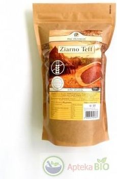 Teff Teff to rodzaj zboża rosnącego głównie w Afryce, w Etopii Teff uznawany jest za ziarno życia, ponieważ zawiera tak wiele ważnych dla prawidłowego funkcjonowania organizmu składników odżywczych, że tamtejsza ludność może żywić się głównie nim przez wiele lat. Teff jest zbożem naturalnie bezglutenowym, bez obaw więc mogą go spożywać osoby chore na celiakię, czy nietolerujące glutenu. Jeżeli chodzi o jego bogactwo składników odżywczych, to zdecydowanie bije na głowę inne ziarna - zbliżone właściwości do teffu ma tylko canihua. Teff odznacza się dużą zawartością żelaza, jest to szczególnie ważne dla kobiet w ciąży, które od drugiego trymestru mogą mieć niedobory żelaza, a także dla osób, które spożywają niewielkie ilości czerwonego mięsa, lub nie spożywają go wcale. Ziarno teff ma również duże ilości błonnika pokarmowego, ponieważ aż 30% węglowodanów, które z niego pochodzą stanowi czysty błonnik. Jest on także źródłem dobrze przyswajalnego przez organizm ludzki białka, dlatego powinien być stałym punktem w menu wegetarian i wegan - zawiera wiele cennych i niezbędnych dla organizmu aminokwasów. Warto również podkreślić, że teff jest dobrym źródłem manganu oraz witaminy K. Skład: 100% ziarno teff (miłka abisyńska, zboże pochodzące z Etiopii) Teff ziarno Ziarno teff należy najpierw dokładnie opłukać (co nie jest łatwe ze względu na ich mały rozmiar). Następnie teff przesypujemy do garnka i dolewamy do niego wody w stosunku 1:1. Teff gotujemy około 7 minut, jednak warto zostawić je jeszcze na 5 minut w garnku pod przykryciem. Teff wartości odżywcze Wartość energetyczna 334 kcal Tłuszcz (w tym kwasy tłuszczowe nasycone) 2,1 g (0,7g) Węglowodany (w tym cukry) 65,4 g (5,6g) Błonnik 19 g Białko 12,3 g Sól 0 g Indeks glikemiczny 50 Waga netto: 1000g