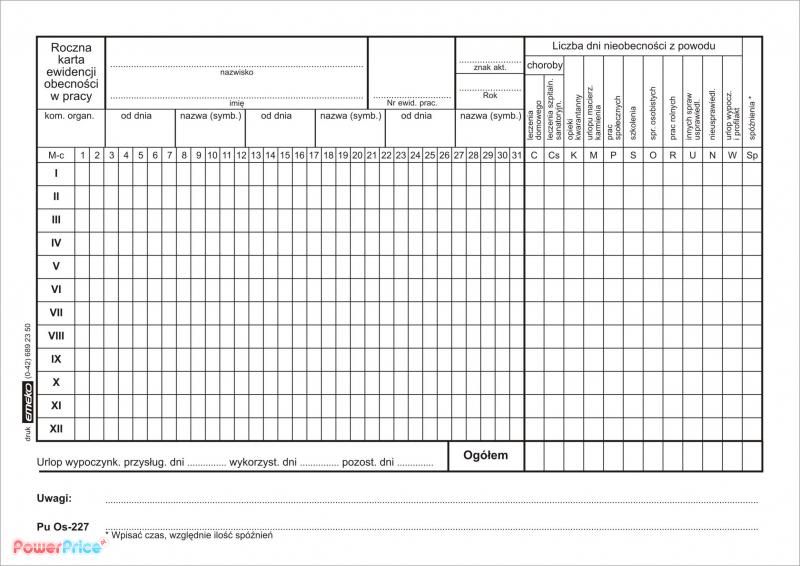 Opinie Roczna karta ewidencji obecności A5 karton OS- 227 Stryków