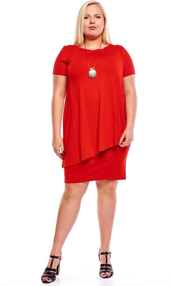 Dwuwarstwowa sukienka. Spód to prosta dopasowana tkanina. Doskonale opina każdą figurę, wierzch jest luźny i asymetryczny, z lewej, krótszej strony niezszyty. Układa się bardzo efektownie, tuszuje niedoskonałości sylwetki. Bardzo wygodna, nie krępuje ruchów. Dekolt w kształcie łódki, rękaw zwykły, krótki. Sukienka uszyta została z bardzo elastycznej, lejącej dzianiny – wiskozy. Skład surowcowy: 90% wiskoza, 10% elastan. Sukienkę polecamy kobietom w każdym wieku, na co dzień. Po dobraniu odpowiednich dodatków można stworzyć bardzo udaną stylizację na bardziej uroczyste wyjścia. Jeśli chcesz wyglądać wyjątkowo i czuć się komfortowo to ta sukienka jest właśnie dla Ciebie. PRODUKT POLSKI Kupując polskie marki wspierasz rozwój rodaków. Polska rośnie w siłę.