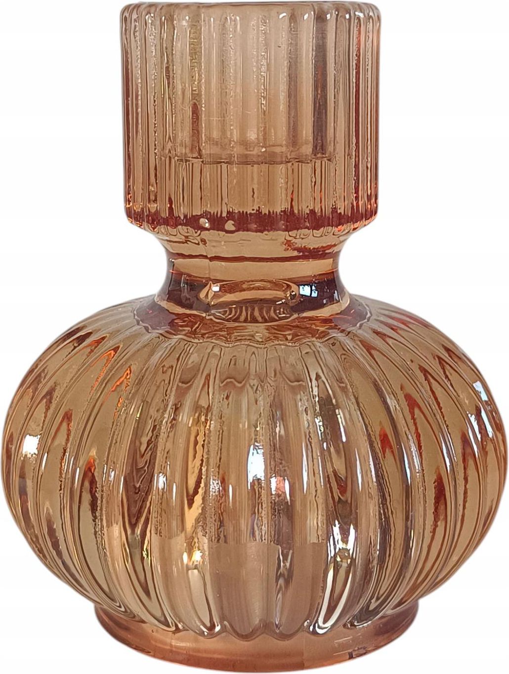Świecznik szklany tłoczone szkło dekoracyjny świecznik brązowy Stryków