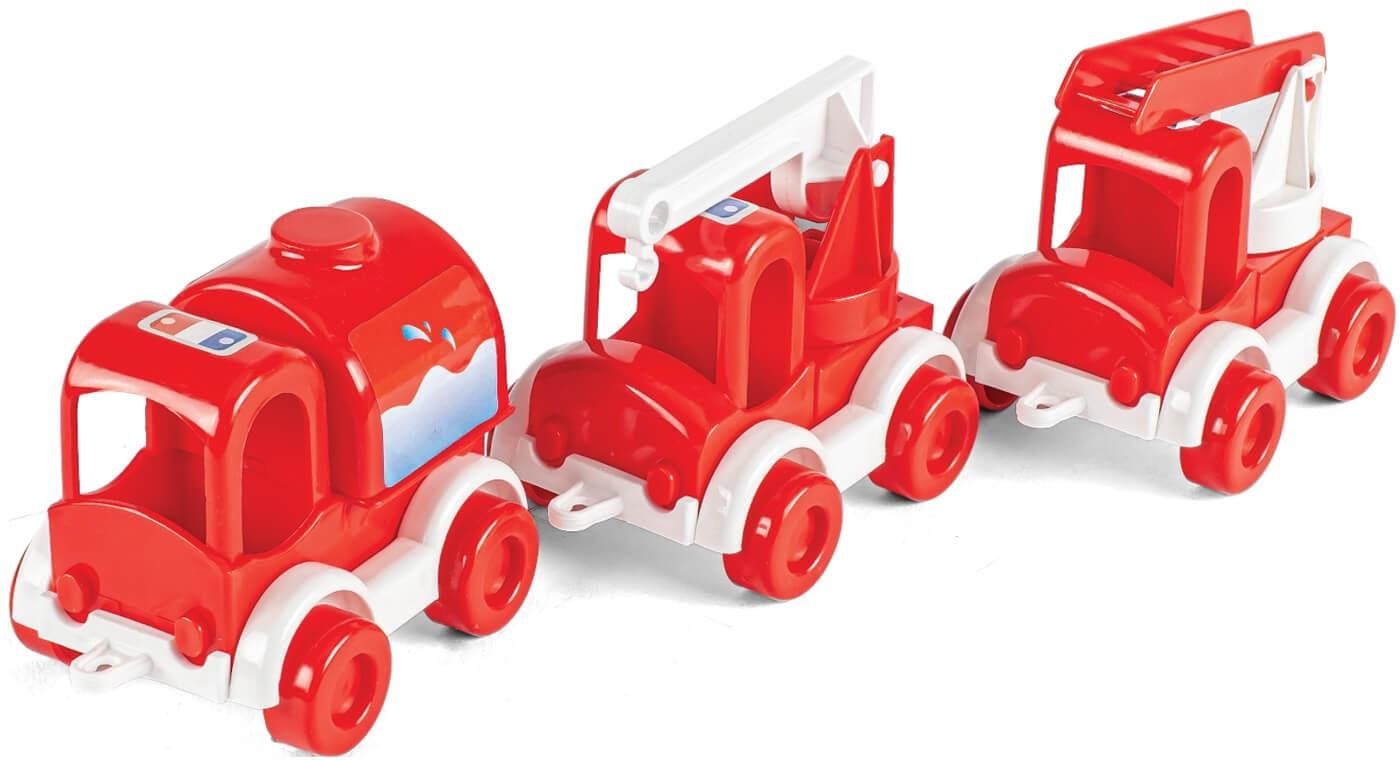 WADER Zestaw 3 autek Kid Cars Straż pożarna Kid Cars Straż pożarna Tematyczne autka z serii Kid Cars to 5 różnych wariantów dla wszystkich młodych miłośników motoryzacji: lokomotywa z wagonami, auta budowlane, zestaw straży pożarnej, pogotowia i policji. Opływowe kształty w połączeniu z …
