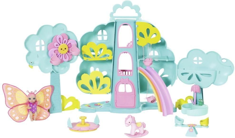 Baby Born Domek na drzewie Numer zestawu: 904480 Wiek: 3+ Domek na drzewie - zestaw do zabawy, który można zabrać ze sobą wszędzie, z mnóstwem niespodzianek na placu zabaw: tęczowa zjeżdżalnia, huśtawka, winda, konik na biegunach, fontanna ze słodkimi liliami i basen. Z ekskluzywną lalką ze skrzydłami. Produkt nowy, w oryginalnym opakowaniu.