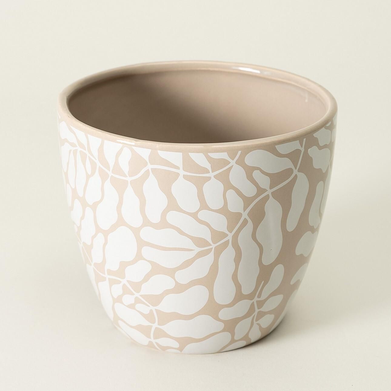 Osłonka na doniczkę, która podkreśli urok Twoich roślin, wprowadzając do wnętrza nutę elegancji i naturalnego piękna. Wykonana z wysokiej jakości kamionki, wyróżnia się ciepłym, beżowym odcieniem oraz delikatnym, organicznym wzorem inspirowanym naturą. Biały motyw przypominający liście dodaje …