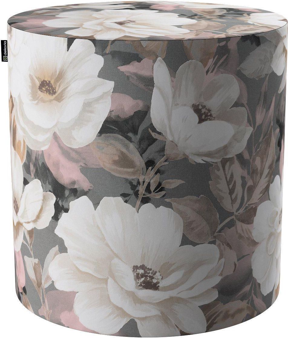 Dekoria Puf Barrel kremowe i różowe kwiaty na szarym tle 40 wys. 40 cm Gardenia Strzegom