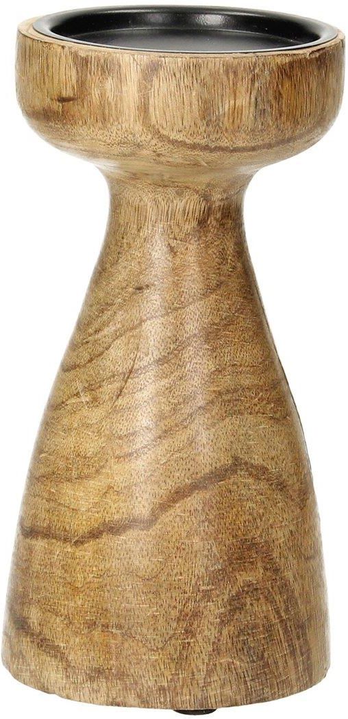 Wyjątkowy świecznik wykonany z drewna mango. Świecznik drewniany w naturalnym kolorze to stylowa dekoracja o widocznych słojach. Wspaniale zaprezentuje się we wnętrzach w stylu boho czy rustykalnych. Świecznik z drewna mango skompletuj z mniejszym świecznikiem tej samej serii. Delektuj się nastrojowym efektem w Twoim domu. Świecznik przeznaczony na pojedynczą świecę. Wymiary: śr. 9,5 cm, wys. 19 cm.Materiał: drewno mango.