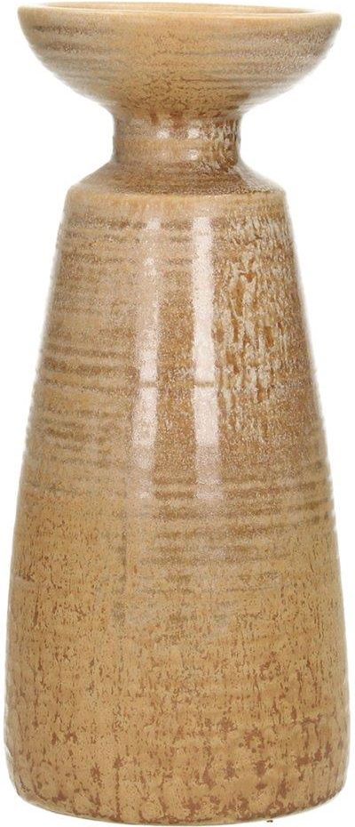 Porcelanowy świecznik w odcieniach ciepłego brązu. Elegancka dekoracja o ciekawej formie pięknie uzupełni aranżacje sypialni czy salonu. Ciepła kolorystka w odcieniach brązu sprawia, że świecznik pięknie komponuje się z dodatkami w stylu boho, vintage czy rustykalnym. Świecznik z porcelany będzie wspaniałym prezentem od serca. Skompletuj go z innym świecznikiem tej serii. Wymiary: szer. 11 cm, dł. 11 cm, wys. 24 cm.