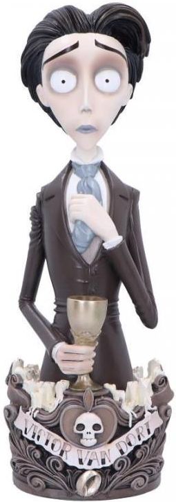 Oficjalnie licencjonowany produkt Corpse Bride: Odkryj krainę zmarłych dzięki temu oficjalnie licencjonowanemu popiersowi Victora Corpse Bride Victor Bust z udziałem Victora Van Dorta, tego nieświadomego pana młodego, który znajduje się w tajemniczym i makabrycznym świecie Szczegółowa rzeźba: nerwowy wyraz Victora, potargane włosy, a nawet najmniejsze niuanse jego stroju zostały wiernie odtworzone w tym biustie Odlew z najlepszej żywicy i fachowo ręcznie malowany: Odlej najlepszą żywicę, zanim zostanie fachowo ręcznie pomalowana, ten biust Corpse Bride Victor jest urzekającym dziełem uhonorowania dziedzictwa kinowego arcydzieła Tima Burtona Corpse Bride: Odkryj krainę zmarłych dzięki oficjalnie licencjonowanej kolekcji prezentów Corpse Bride Nemesis Now