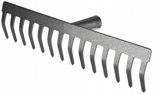 GRABIE METALOWE OGRODOWE HOBBY VERDENIA 14 zębów 34cm 0369 Grabie to niezbędny element wyposażenia każdego ogrodu. Doskonale sprawdzą się podczas wygrabiania, spulchniania, zruszania ziemi pod zasiew. Wykonane z jednego wykroju, bardzo mocne. Wykonane ze stali hartowanej dzięki czemu produkt jest odporny na korozję. Grabie posłużą w gospodarstwie przez wiele lat. Grabie metalowe 14-zębne. Stosowane w ogrodnictwie do rozdrabniania gleby. Wykonywane są w postaci wykroju z grubej (4–6 mm) blachy stalowej. Jest to listwa o wymiarach 80 x 400–500 mm. z jednej strony tej listwy wycięte są zęby na głębokość 50–70 mm. Na środku listwy zamocowana jest stożkowa tulejka, służąca do mocowania drewnianego trzonka. Doskonale sprawdzą się w ogrodzie, gdzie jest dużo pracy i potrzeba mocnych narzędzi. Opakowanie 1 grabie uniwersalne bez kija.