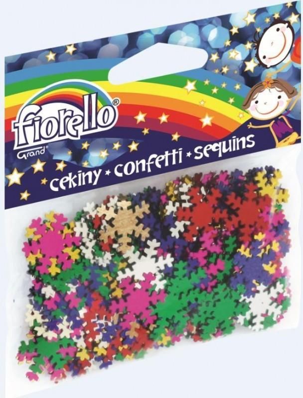 CEKINY KONFETTI 18X18MM 14G MIX KOLORÓW ŚNIEŻYNKA GRK142 FIORELLO Cekiny marki Fiorello. Świetnie nadają się do dekorowania różnych ozdób styropianowych, odzieży, czy też ornamentyki zaproszeń, dyplomów lub laurek. Sposób użycia jest różny: można naszyć, przykleić czy też przypiąć szpilką ale rezultat jest ten sam – powstaje wyjątkowa, jedyna w swoim rodzaju indywidualna kompozycja, własnego autorstwa. Zapakowane w folię ochronną. Zgodne z wymaganiami UE. Rozmiar: 18x18mm. Waga: 14g. Kolor: mix kolorów. Twórz, maluj, koloruj, ozdabiaj! Fiorello zaprasza do zabawy, poprzez sprzedaż produktów szkolnych i kreatywnych. Wesoła, łatwo rozpoznaalna seria z tęczą pozwla rozwijać się twórczo i uczyć z prawdziwą przyjemnością.