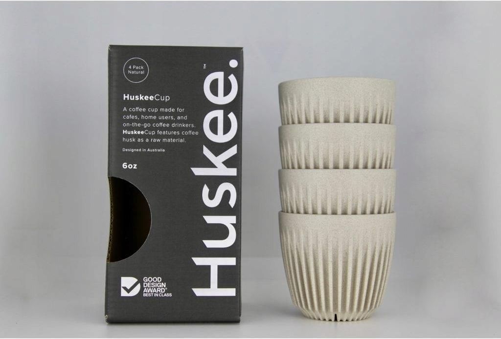 Kubek Huskee Cup 6oz (177ml) natural komplet 4szt. Komplet 4 sztuk Huskeecup o pojemności 6oz (177ml) w kolorze natural. Filiżanka kawy stworzona dla kawiarni, użytkowników domowych oraz pijących kawę w podróży. HuskeeCup zawiera łuskę kawy jako surowiec. Zalety: Ponowne wykorzystanie odpadów (łuska kawy) - Utrzymuje gorącą kawę na dłużej Wygodne w trzymaniu, nie parzy dłoni Trwały i przyjazny dla zmywarki Nietoksyczny (nie zawiera BPA) Łatwy do czyszczenia Ergonomiczny