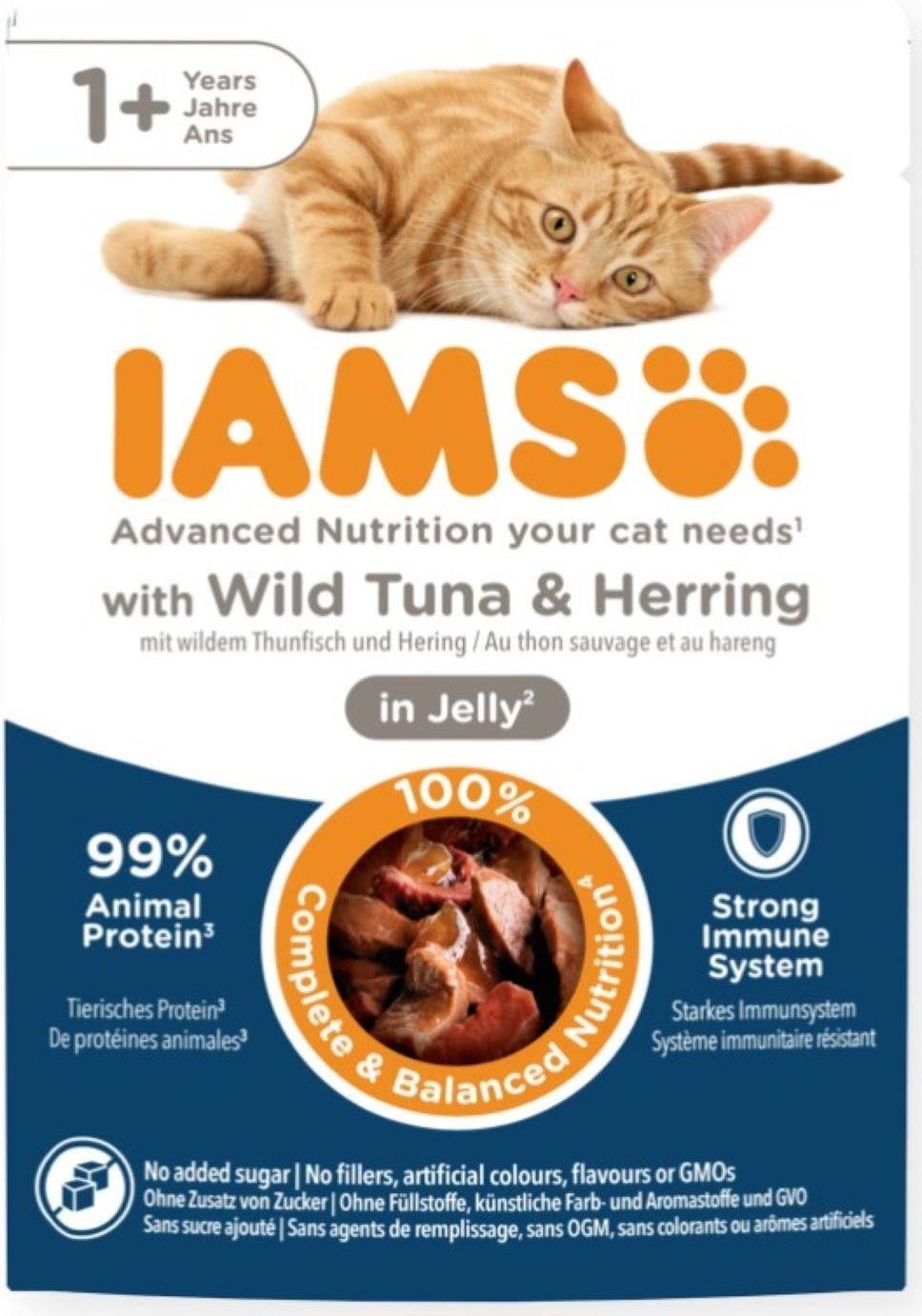 IAMS Advanced Nutrition – mokra karma w saszetkach z tuńczykiem i śledziem w galarecie dla kotów powyżej 1. roku życia 24x85g Strzegom