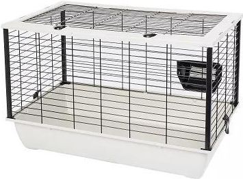 Klatka dla królika. Klatka ma na wyposażeniu paśnik, idealny do podawania w nim sianka dla królika, a czasami przysmaków. Głęboka kuweta zapobiega wysypywaniu się trocin z klatki, dzięki czemu pozwala na większe zachowanie czystości. Klatka do samodzielnego montażu, składana na profilach. Otwierana …