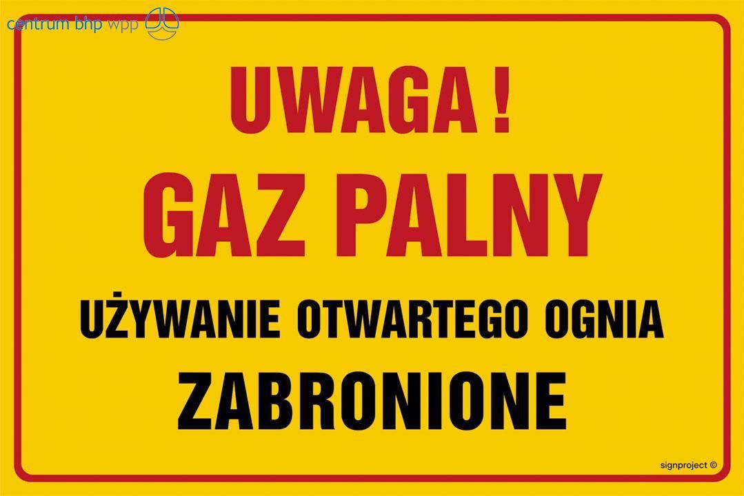 Jd045 Uwaga! Gaz Palny. Używanie Otwartego Ognia Zabronione, Bn - Płyta Żółta 0,6Mm (100X75Mm) Strzegom