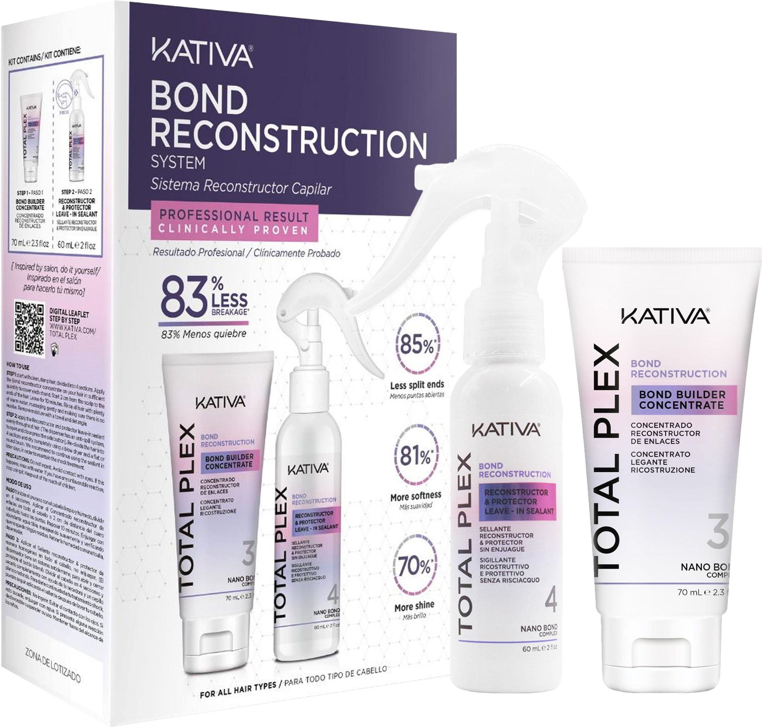 KATIVA BOND RECONSTRUCTION ZESTAW DO WŁOSÓW Zestaw do odnawiania włosów Kativa Total Plex to system, który składa się zaledwie z dwóch etapów, których formuły przywracają wiązania keratynowe i usuwają wszelkie uszkodzenia, które mogą wystąpić w Twoich włosach, czy to przez farbowanie, zmianę …