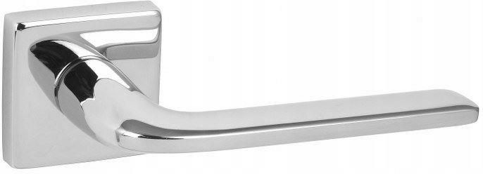 Domino Klamka Vittoria na rozecie M6 chrom chrom Nowoczesne rozwiązanie do drzwi wewnętrznych, składające się z oddzielnej rączki i dolnej tarczy. Uniwersalna konstrukcja pozwala na łatwy montaż i estetyczne wykończenie skrzydeł drzwiowych w każdym pomieszczeniu.