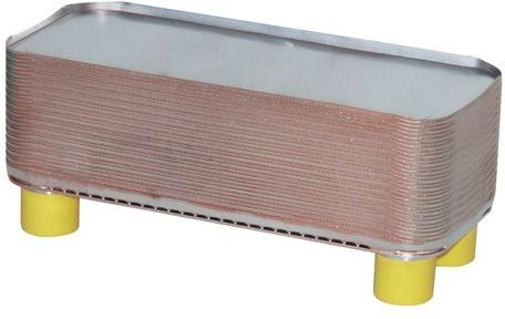 Charakterystyka: Płytowe lutowane wymienniki ciepła są urządzeniami przepływowymi, przeciwprądowymi. Powierzchnię wymiany ciepła tworzą karbowane płyty ze stali nierdzewnej połączone w pakiet za pomocą lutu miedzianego lub niklowego. Przepływ płynów wymieniających ciepło jest ukierunkowany w co drugi kanał tworzony przez płyty grzewcze. Wymienniki wykonane są w całości ze stali nierdzewnej jako konstrukcja nierozbieralna. Szczelność konstrukcji oraz trwałe zespolenie płyt zapewnia proces lutowania w piecu próżniowym. Specjalne profilowanie płyt grzewczych zapewnia przepływ o dużej turbulencji. Umożliwia to bardzo efektywną wymianę ciepła oraz zapobiega gromadzeniu się zanieczyszczeń wewnątrz wymiennika. Dobór wymiennika płytowego uzależniony jest od mocy wkładu kominkowego, który został wybrany. Wymiennik 10 płytowy można stosować do wkładów kominkowych o mocy do 10 kW. Zalety: - Wysoki współczynnik wymiany ciepła - Małe gabaryty przy dużych mocach cieplnych - Wysoka odporność na zmiany ciśnienia i temperatury - Zmiana liczby płyt i układu kanałów umożliwia dostosowywanie urządzenia do indywidualnych potrzeb odbiorcy - Prosty montaż i demontaż Materiały: - Płyty i przyłącza: stal nierdzewna - Lutowanie: miedź i nikiel Zastosowanie: - Centralne ogrzewanie - Ogrzewanie ciepłej wody użytkowej - Systemy ogrzewania słonecznego, geotermicznego - Wymiana ciepła w procesach przemysłowych - Skraplacze i parowniki w pompach ciepła - Przemysłowe instalacje chłodzące (chłodnice oleju) - Chłodnictwo