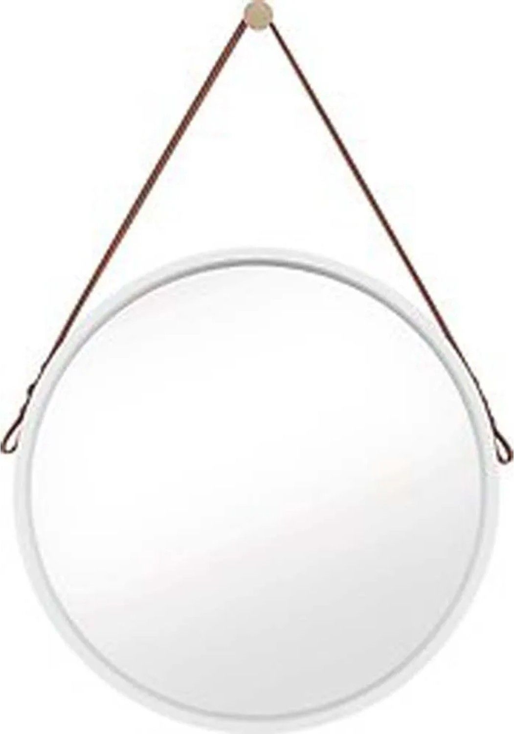 BALIV Lustro ścienne ROUND 78 białe Lustro ścienne z drewnianą ramą, okrągłe, białe. Z brązowym paskiem o wyglądzie skóry i drewnianym haczykiem do łatwego zawieszenia. Akcesoria łazienkowe są dopełnieniem stylu, który chcemy nadać temu wyjątkowemu pomieszczeniu. Dzięki odpowiednio dobranym dodatkom łazienka może stać się prawdziwą strefą relaksu zaaranżowaną w Twoim guście. - stworzony by służyć całe życie Akcesoria łazienkowe zmienią Twoją łazienkę w prawdziwą oazę dobrego samopoczucia. W jakość i design idą w parze. Przywiązujemy olbrzymią wagę do wysokiej jakości materiałów, wszak uważamy, że nasze akcesoria powinny nie tylko dobrze wyglądać, ale także być wytrzymałe, abyś mógł się nimi cieszyć przez długi czas. Właśnie dlatego marka oferuje na cały swój asortyment.