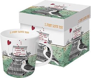 Kubek porcelanowych o pojemności 350 ml, zdobiony motywem mewy i starej maszyny do pisania i stylizowanym napisem: I Just Love You. Wykonany z porcelany charakteryzującej się wyjątkową elegancją i wytrzymałością. Poręczne ucho gwarantuje stabilny uchwyt podczas picia. Zapakowany w ozdobne pudełko, …