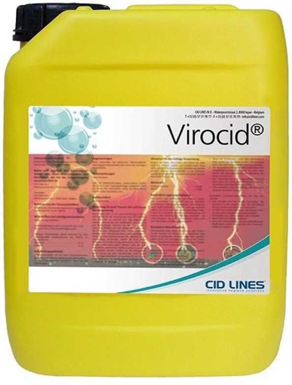 Właściwości: 170,6 ml/l Alkil (C12-16)-chlorku dimetylobenzyloamonu (ADBAC/ BKC (C12-16)) (CAS: 68424-85-1), 78,0 ml/l Chlorek didecylodimetyloamonu (DDAC) (CAS: 7173-51-5) • 107,25 ml/l Glutaral (aldehyd glutarowy) (CAS: 111-30-8), Zastosowanie w PT2 (środki dezynfekcyjne lub glonobójcze nieprzeznaczone do bezpośredniego stosowania wobec ludzi ani zwierząt) i PT3 (higiena weterynaryjna), Tylko do użytku profesjonalnego. Skoncentrowany produkt rozpuszczalny w wodzie. Stosowanie: VIROCID należy stosować w stężeniach 0,5 % na powierzchniach metalowych niezanieczyszczonych pozostałościami organicznymi; na powierzchniach porowatych i zanieczyszczonych zaleca się stosowanie roztworu 1,0 % przy efektywnym czasie działania 60 minut ; preparat może być nanoszony na odkażone powierzchnie przez polerowanie, opryskiwanie lub rozpylanie z użyciem aparatury wysokociśnieniowej, po przeprowadzeniu zabiegu odkażane powierzchnie lub sprzęty należy spłukać silnym strumieniem wody, dezynfekowane pomieszczenia należy dokładnie wywietrzyć, zwierzęta wprowadzić po 3 - 4 godzinach po zabiegach . Nadaje się do dezynfekcji w formie zamgławiania: - stosować 1L Virocid + 4L wody na 1000m3 powierzchni Cechy: brunatny płyn pH dla stężenia 1% : 7 gęstość przy temp. 20°C : 1, 005 kg/l punkt zamarzania : -10°C Zalecany sposób użycia: Do dezynfekcji wszystkich materiałów i urządzeń w szpitalach, placówkach medycznych i miejscach użytku publicznego: Roztwór: 1: 400 - 1: 200 (0,25% -0,5%) Nanieś Virocid® na wszystkie powierzchnie za pomocą spryskiwacza, gąbki lub mopa. Powierzchnie muszą pozostać wilgotne przez 10 minut. Nie używaj materiałów i urządzeń, dopóki nie wyschną. Uwaga: Virocid® nie może być stosowany jako końcowy środek sterylizujący na żadnej powierzchni lub urządzeniu, które ma bezpośredni kontakt z ciałem człowieka lub z błonami śluzowymi. Virocid jest preparatem dezynfekcyjnym przeznaczonym do odkażania budynków inwentarskich, środków transportu dla zwierząt, urządzeń i wyposażenia używanego w hodowli zwierząt i weterynarii. Składniki czynne preparatu posiadają silne, skojarzone działanie bakterio- , grzybo- i wirusobójcze preparat zawiera tenzydy kationowe zmniejszające napięcie powierzchniowe, co umożliwia penetrację powierzchni porowatych i zanieczyszczonych preparat wykazuje działanie myjące posiada szerokie spektrum działania, nie wywołuje korozji i nie niszczy odkażanych powierzchni. Więcej informacji o środkach dezynfekcyjnych i higienicznych