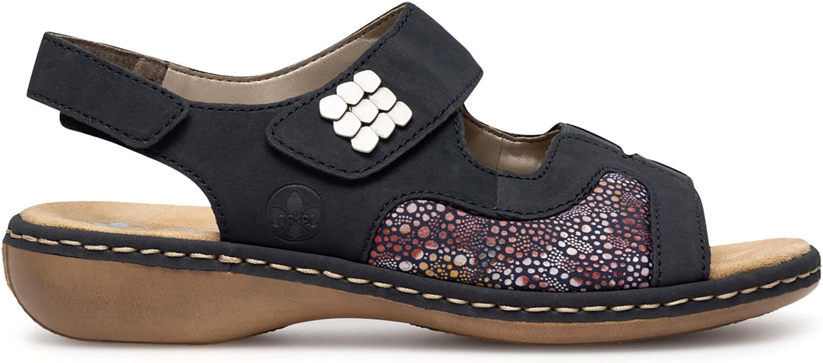 Oto idealne sandały na lato Rieker w niebieskim kolorze, które wprowadzą powiew wakacji do Twojego codziennego stylu! Wygodne, z płaskim obcasem, są stworzone do chodzenia po plaży, parku czy miejskich uliczkach. Zaprojektowane z myślą o codziennej wygodzie - zapięcie na rzep ułatwia szybkie zakładanie i dopasowanie do stopy. Casualowy styl tych butów sprawia, że będą one pasować praktycznie do wszystkiego - od letnich sukienek po spodnie. Zasługujesz na komfort i styl każdego dnia, wybierz sandały Rieker! Od ponad stu lat marka Rieker oferuje niezwykle komfortowe i trwałe obuwie, które powstaje z myślą o zdrowiu stóp. Dzięki wieloletniemu doświadczeniu w produkcji obuwia, ta niemiecka marka doskonale potrafi łączyć wygodę ze stylem, dlatego w ofercie znajdziesz buty w modnych, oryginalnych fasonach, które każdemu przypadną do gustu. Buty Rieker tworzone są z materiałów wysokiej jakości, przez co odznaczają się wyjątkową elastycznością i trwałością, ale też lekkością. Ponadto w obuwiu stosuje się szerszą formę zapewniającą odpowiednią stabilizację stopy, specjalne podeszwy absorbujące wstrząsy oraz odciążające stawy i kręgosłup, a także wyjmowane wkładki z pianki Memory Foam, która idealnie dopasowuje się do kształtu stóp. To doskonałe produkty dla tych, którzy ponad wszystko cenią sobie komfort. Przekonaj się!