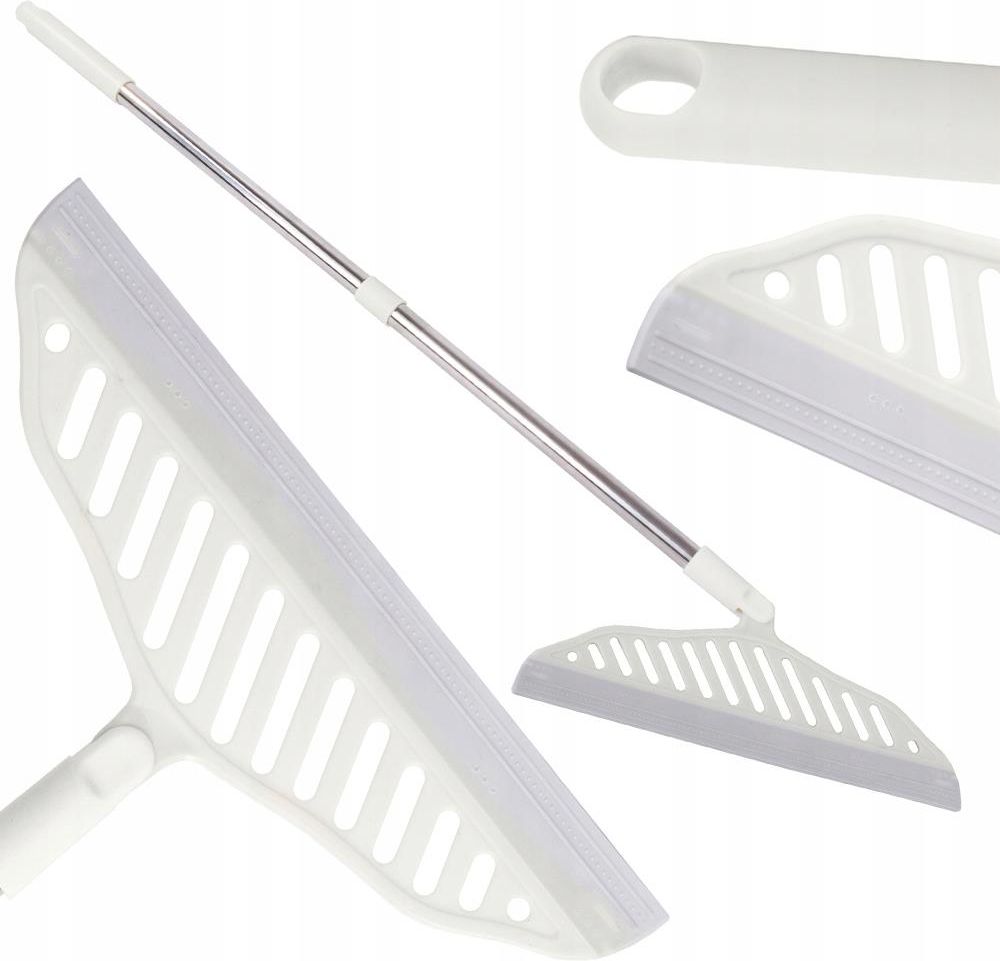ŚCIAGACZKA DO WODY PODŁÓG OKIEN SZYB LUSTRA MIOTŁA WYCIERACZKA DO KURZU Ściągaczka do wody, uniwersalna zarówno do odciągania wody jak i czyszczenia powierzchni podłogowych. Nie uszkadza mytych powierzchni. Wykonana z tworzywa sztucznego i gumy, dokładnie przylega do mytej powierzchni. Może być stosowana zarówno do suchych jak i mokrych powierzchni bez problemu ściągnie plamy wody, włosów i kurzu z narożników. Wytrzymały drążek który składa się z dwóch części, można go łatwo rozłożyć i ściągacz, który można obracać o 180 stopni. Idealna do garażu, płytek, szkła, mokrej podłogi, prysznica i każdej gładkiej powierzchni. Ściągacz wody do podłogi bez problemu usuwa włosy, wodę, brud itd. Może być również stosowany jako wycieraczka do okien. ZASTOSOWANIE: ✅ Do odprowadzania wody ✅ Usuwania włosów i sierści zwierząt ✅ Do okien i szyb ✅ Kabin prysznicowych ✅ Podłóg drewnianych i płytkowych ✅ Luster SPECYFIKACJA TECHNICZNA: ✅ Kod produktu: 27033 ✅ Materiał: tworzywo sztuczne ✅ Łatwa w użyciu ✅ Lekka i poręczna ✅ Do podłóg drewnianych i płytek ✅ Łatwa w czyszczeniu - po użyciu należy opłukać pod bieżącą wodą i wysuszyć ✅ Wymiary: 86cm x 30,5cm ZESTAW ZAWIERA ☑️ Fabrycznie nową ściągaczkę do wody ☑️ Oryginalne opakowanie