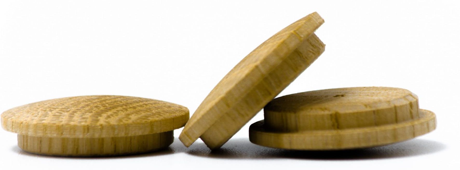 Solidnie i estetycznie wykonane zaślepki dębowe o średnicy trzpienia 35 mm (100 szt.) - pasują do otworu o średnicy 35 mm. WYMIARY: - średnica wewnętrzna - 35 mm - średnica zewnętrzna - 40 mm - wysokość widoczna - 6 mm - wysokość całkowita - 10 mm Zaślepki stosuje się przy montażu schodów, altan, mebli oraz innych elementów drewnianych w celu ich estetycznego wykończenia Powierzchnia oferowanych zaślepek jest gładka i oszlifowana więc idealnie nadaje się do bejcowania czy lakierowania.
