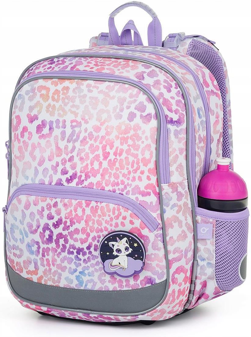 Lekki plecak BAZI jest odpowiedni dla wszystkich dziewczynek od 115 cm. Zwierzęcy wzór w subtelnych kolorach i mocno trzymający magnes na dolnej kieszeni, to nowość w naszej ofercie.Trzy magnesy otrzymujesz z plecakiem. Możesz uzupełnić plecak o dodatkowe magnesy z zestawu ZMAG 24003. Plecak posiada dwie główne pojemne komory. Tylna komora plecaka jest szersza, dzięki czemu można umieścić w niej najcięższe książki. W środkowej komorze znajduje się zapinana na zamek kieszeń z siatki i identyfikator. Głęboka kieszeń z przodu plecaka zmieści pudełko na śniadanie lub piórnik PENN 24003 w tym samym wzorze (oba elementy należy dokupić osobno, nie są wyposażeniem). Główne cechy: niska waga 900 gramów mocne, anatomicznie ukształtowane plecy bez stelaża dwie przegrody, dwie kieszenie z przodu, dwie kieszenie z boków regulowana wysokość klamry na klatce piersiowej podwójnie regulowane paski na ramiona szlufki na pas biodrowy TOP 24021 lub TOP 24022, pas nie jest wyposażeniem, można go dokupić magnesy na końcach pasków na ramiona (dla łatwiejszego mocowania końców pasków) elementy odblaskowe: z przodu i po bokach plecaka, na paskach naramiennych odczepiane magnesy ZMAG są wyposażeniem membrana przeciwdeszczowa solidny, wodoodporny spód wykonany z materiału TOPDURA plecak został przetestowany w ITC Zlín uchwyt do zawieszenia plecaka na haczyku, plecak nie stoi samodzielnie uchwyt do noszenia plecaka w dłoni