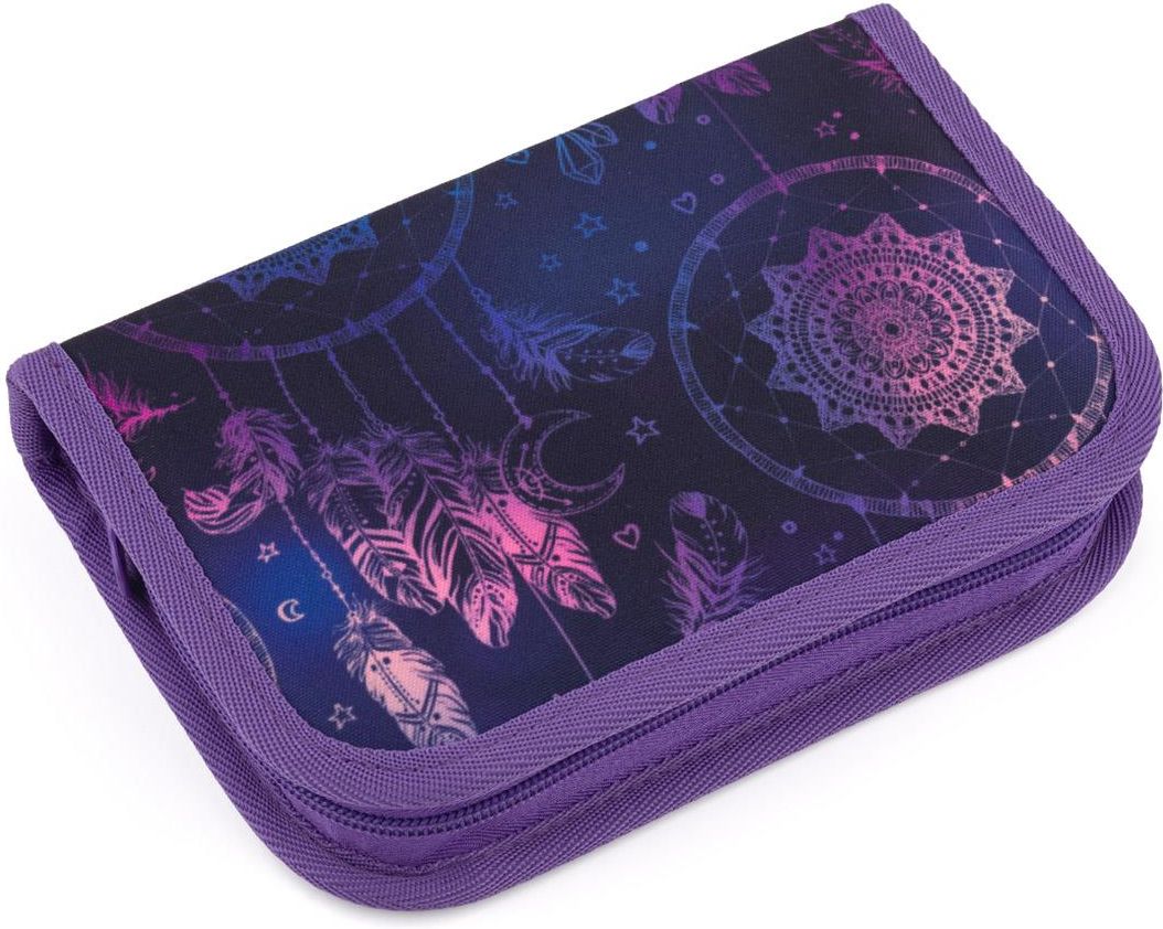 Piórnik szkolny z dwoma skrzydłami Topgal PENN 25006 Topgal Jednokomorowy piórnik szkolny z dwoma skrzydłami. Posiada 21 elastycznych klasycznych uchwytów na kredki, długopisy, trzy szerokie uchwyty na linijkę, i dwa duże uchwyty na temperówkę, gumkę. Piórnik jest bez wyposażenia. Na jednej klapce piórnika znajduje się przezroczysta przegródka z planem lekcji (pst! idealna na ściągi). Piórnik jest usztywniany, ochroni przybory szkolne. Zapina się na zamek z dużymi uchwytami ułatwiającymi otwieranie. Bonus Podszewka piórnika to materiał z obrazkami, które można pokolorować! Do kolorowania używaj zwykłych kredek, flamastry czy pisaki mogłyby się rozlewać poza wyznaczone linie. Kredki nie są dołączone do piórnika, jest niewyposażony. Uwaga Piórnika nie należy prać w pralce, ani namaczać! Nadruk przypada losowo. Płeć: dziewczyny Kolor: fioletowy|czarny Kolekcja: 2025
