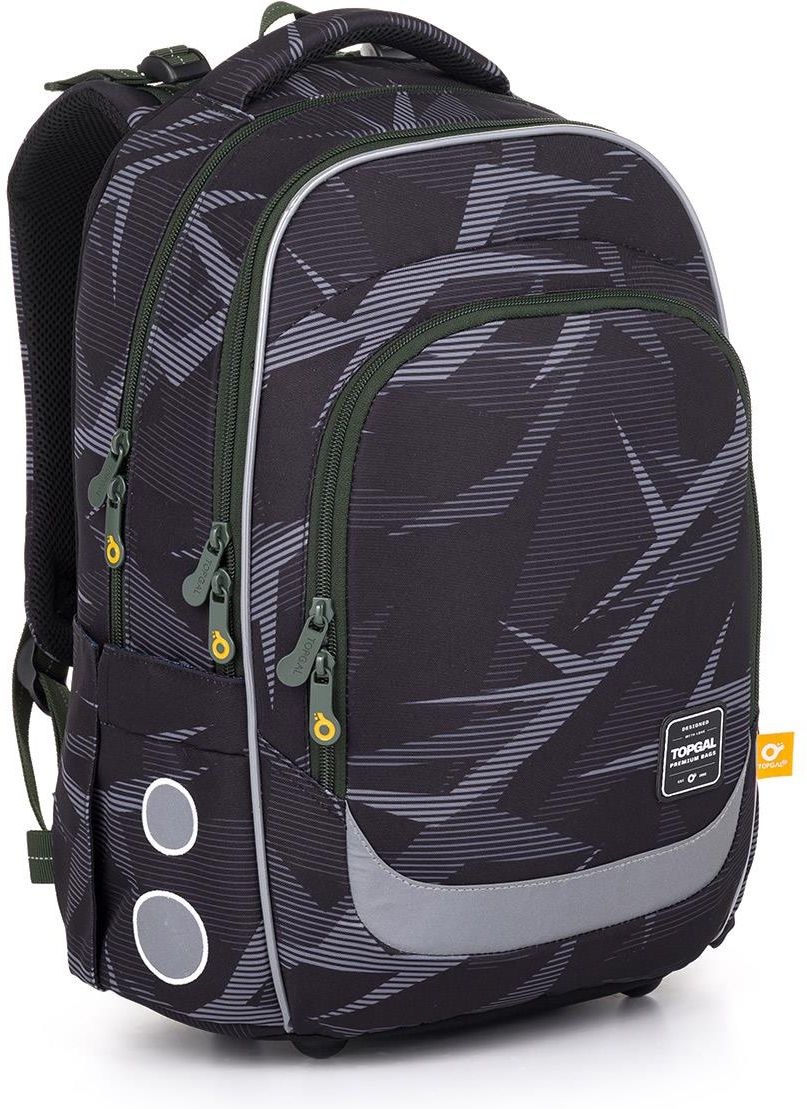 Szarozielony plecak szkolny Topgal LORI 25018 Topgal Dwukomorowy plecak LORI to nowość sezonu 2025, a dzięki pojemności 27 litrów sprawdzi się co najmniej do piątej klasy. Ma ciemne tony, ożywione khaki zamkiem i szarymi detalami. W tylnej komorze znajdziesz praktyczny organizer na podręczniki i zeszyty. W przedniej komorze umieściliśmy siateczkową kieszeń na zamek i identyfikator. Komora jest idealna na przenoszenie pudełka na śniadanie lub piórnika PENN 25018 w tym samym wzorze (elementy nie są wyposażeniem). Plecak LORI ma dwie boczne kieszenie na napoje, w których zmieści się na przykład nasza butelka ZIVA. Główne cechy waży nieco ponad 1 kg dwie komory i jedna głęboka kieszeń sztywny, anatomicznie wyprofilowany tył ze stelażem elementy odblaskowe: z przodu i po bokach plecaka, na szelkach magnesy na końcach szelek (dla łatwiejszego zaczepienia zwisających końcówek) solidne, wodoodporne dno z materiału TOPDURA z nóżkami uchwyty na pas biodrowy, który można dokupić TOP 24021 i TOP 24022 uchwyt do zawieszenia plecaka na ławce (plecak nie stoi samodzielnie) regulowany pas piersiowy odpinany karabińczyk na klucze podwójnie regulowane szelki plecak był testowany w ITC Zlin wodoodporna membrana chroniąca przed deszczem Płeć: chłopcy Kolor: czarny Kolekcja: 2025