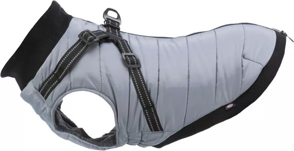 TRIXIE Pontis płaszczyk z szelkami dla psa szary M: 45 cm z poliestru z podszewką i podbiciem z flauszu (100g/m²) z tyłu zamek błyskawiczny na całej długości elementy odblaskowe elastyczna wstawka w okolicy brzucha regulowane pętle na łapy
