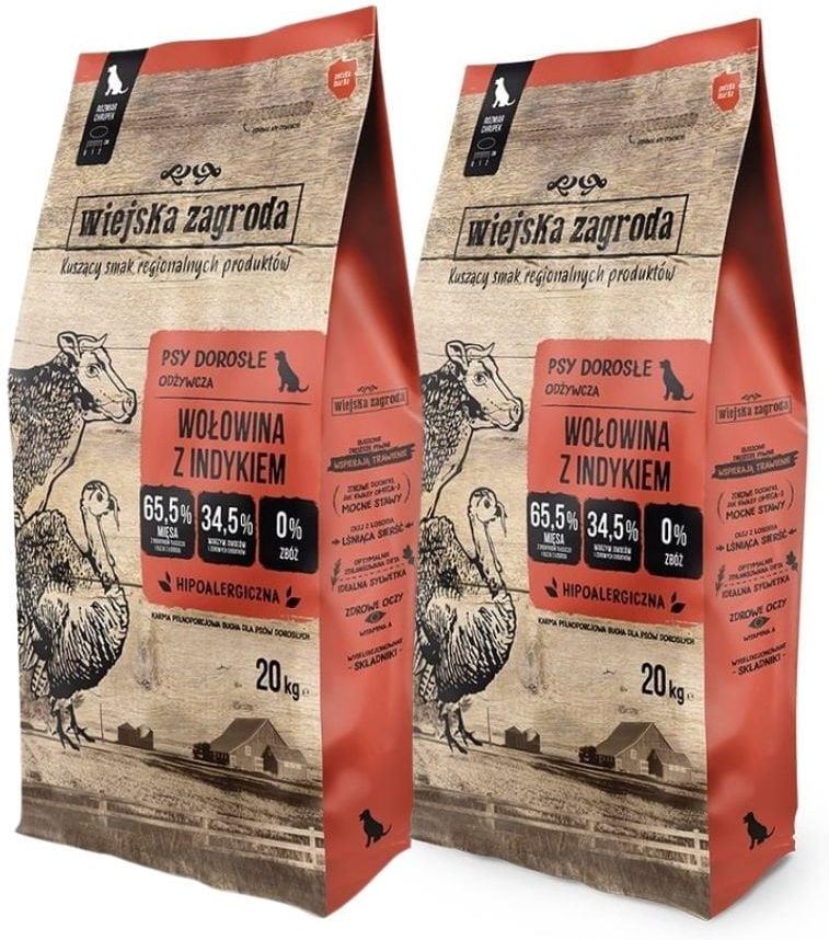 Wiejska Zagroda Wołowina Z Indykiem Chrupki L 2X20kg Strzegom